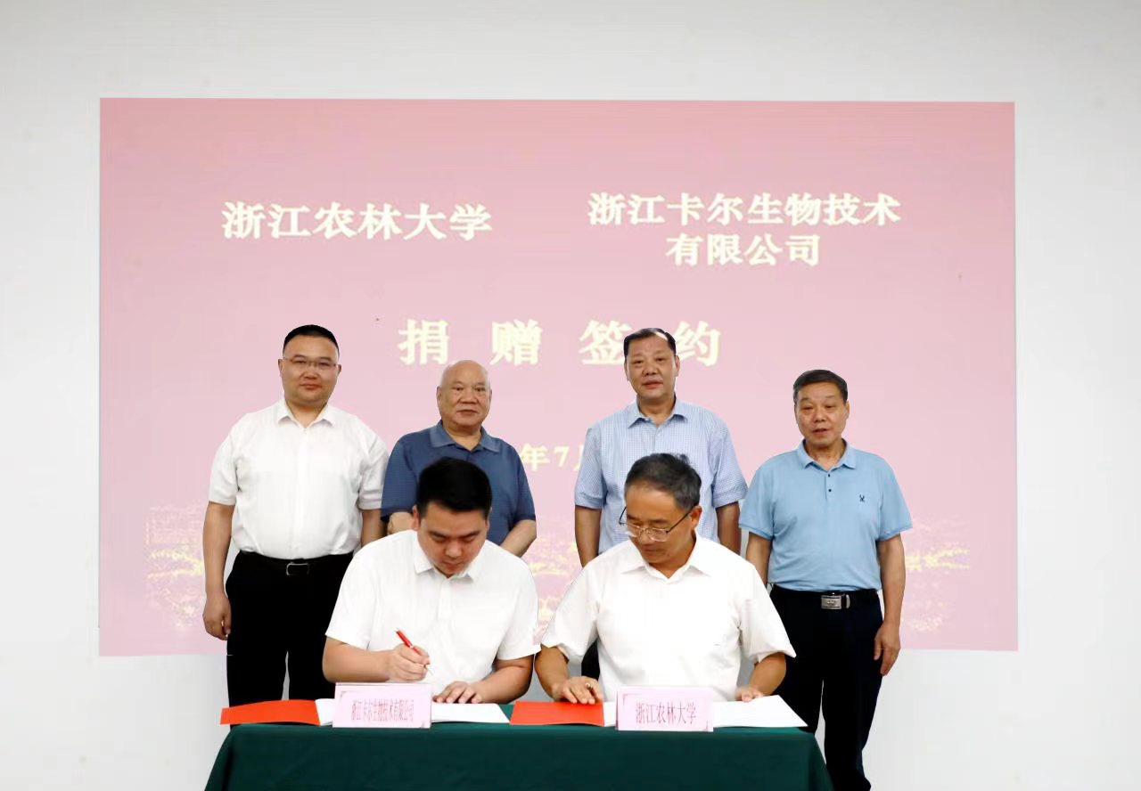 會上還舉行了捐贈簽約儀式。校友企業浙江卡爾生物技術有限公司董事長林高昂與副校長胡祖吉簽署捐贈協議。