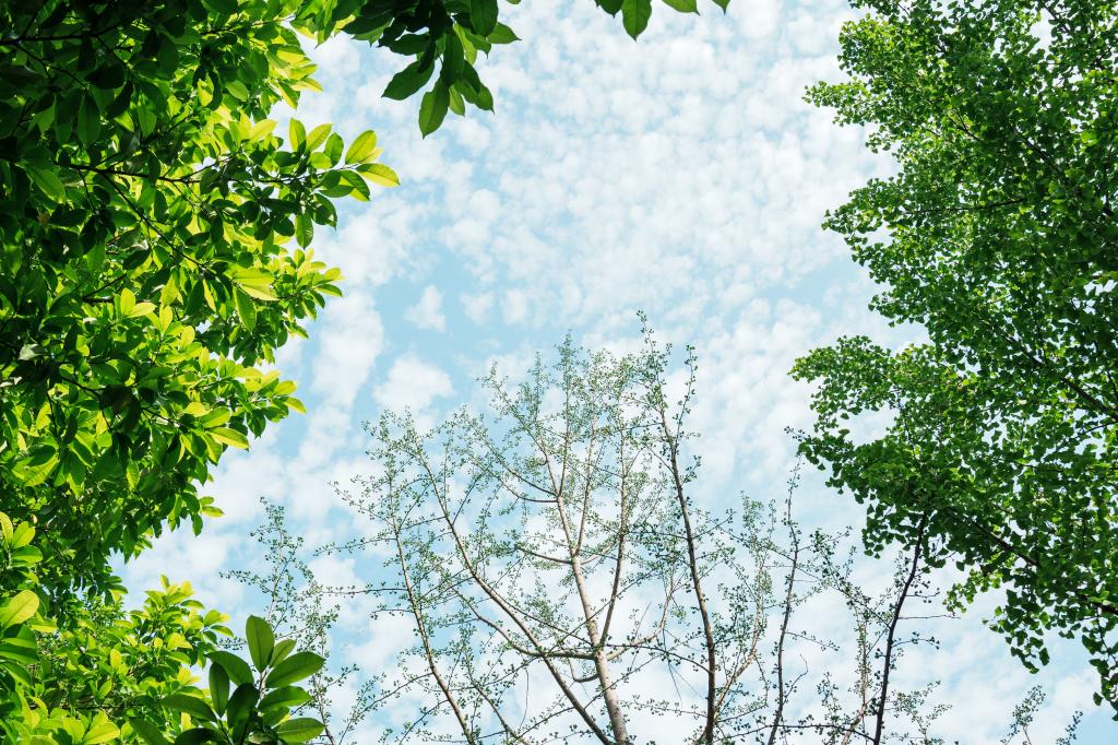 在藍天與綠蔭的映襯下