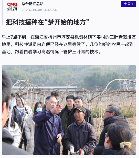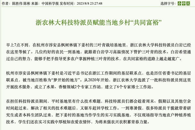 近日,新華網首頁以《把科技播種在“夢開始的地方”》為題,對我校科技特派員賦能大下姜鄉村振興和共同富裕進行了報道。央視新聞、中國科學報等媒體也對此進行了采訪報道。