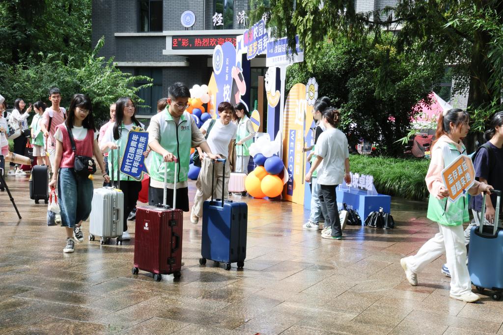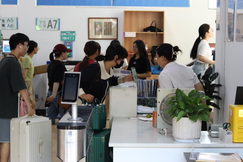 在火車站、汽車站、地鐵站,下車點、報到點、寢室門口,志愿者們幫助新生運送行李、指引路線、辦理手續、維持秩序;宿管員們認真確認學生個人信息,有序發放鑰匙,耐心提醒學生公寓注意事項;保衛處人員維護交通秩序、宣講安全知識;后勤人員耐心接受咨詢、周到提供服務……他們為新生們的報到保駕護航,讓新生感受到來自學校的關懷與溫暖。