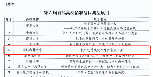 近日,教育部公布了“第六屆省屬高校精準幫扶典型項目”推選結果。我校《一根科技竹成就百姓共富大產業》助力鄉村振興工作案例成功入選。