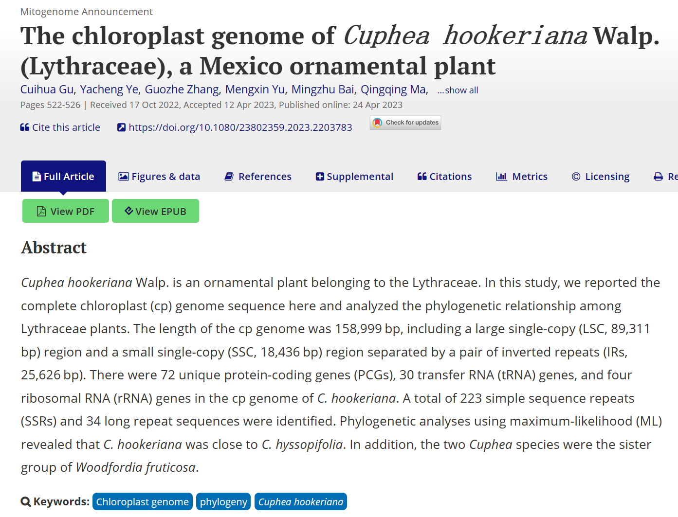 大三時(shí),葉亞澄以第一作者身份在中文核心期刊發(fā)表了題為《細(xì)葉萼距花水培與土培表型變化及生理生化響應(yīng)》的論文;以共一作者身份發(fā)表SCI論文《墨西哥觀賞植物,萼距花(千屈菜科)的葉綠體基因組》(The chloroplast genome of Cuphea hookeriana Walp. (Lythraceae), a Mexico ornamental plant),他的校創(chuàng)項(xiàng)目被鑒定為優(yōu)秀等次,還獲得了學(xué)校第十六屆“東湖杯”大學(xué)生課外學(xué)術(shù)科技作品競(jìng)賽校賽二等獎(jiǎng)等成果。同時(shí),他還主持了浙江省大學(xué)生科技創(chuàng)新活動(dòng)計(jì)劃暨新苗人才計(jì)劃項(xiàng)目。
