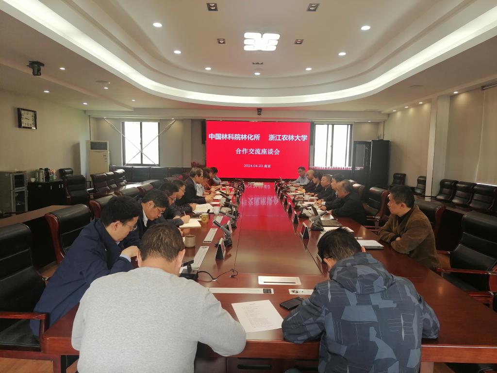 4月22日,校長沈希赴中國林科院林產化學工業研究所交流,簽訂共建農林生物質資源高質利用工程中心合作協議。副校長吳家勝出席活動。中國工程院蔣劍春院士,林化所所長周永紅,書記黃立新,副所長房桂干、劉軍利、徐俊明,紀委書記劉玉鵬出席座談。