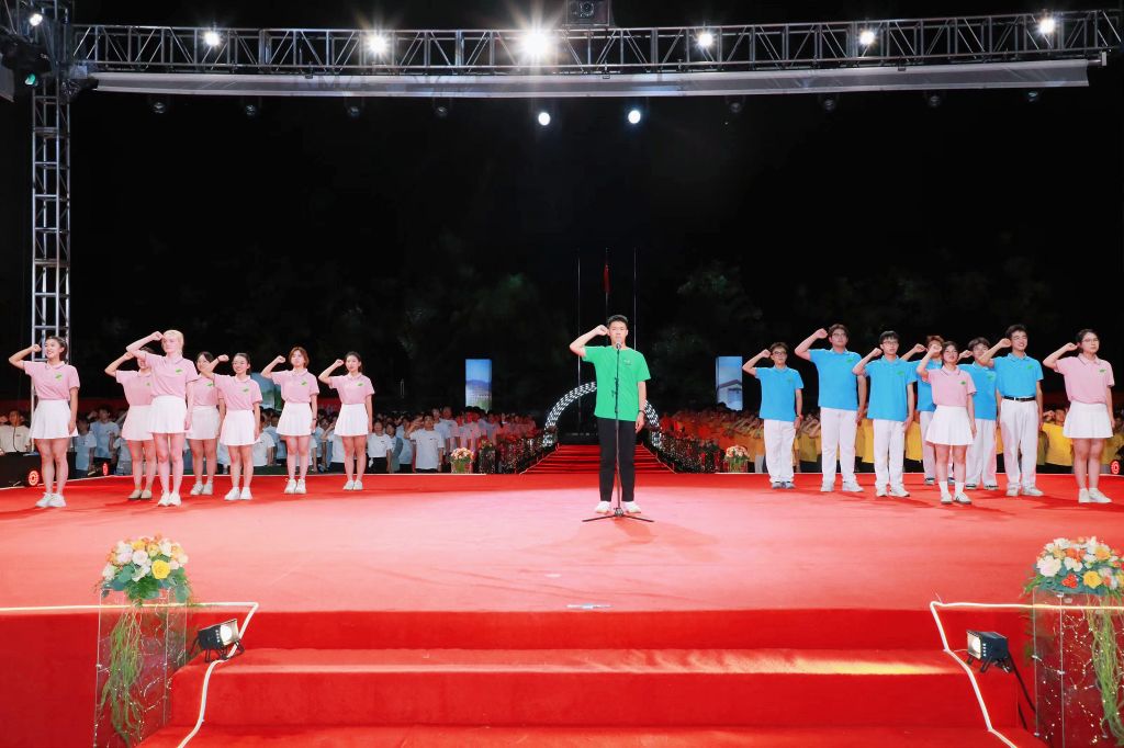 開學典禮在激昂雄壯的國歌聲中拉開帷幕。