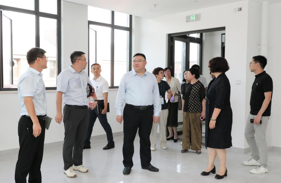 在新農科教育教學中心建設工程項目現場,朱斌一行聽取了項目進展和驗收工作安排匯報,實地查看了各學院樓、交叉中心、本科教學中心等各幢建筑的內部裝飾、設施設備和周邊配套道路、景觀綠化等建設情況,并詳細了解了驗收準備等工作。