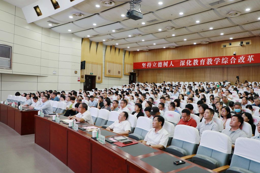 全體中層干部,全體學科專業負責人、本科專業負責人、本科實驗教學示范中心負責人、學生辦主任、教學秘書、評建辦專班成員、校教學督導,學工部、教務處、質控中心、教發中心全體人員,審核評估先進集體和先進個人,骨干教師代表等400余人參加會議。