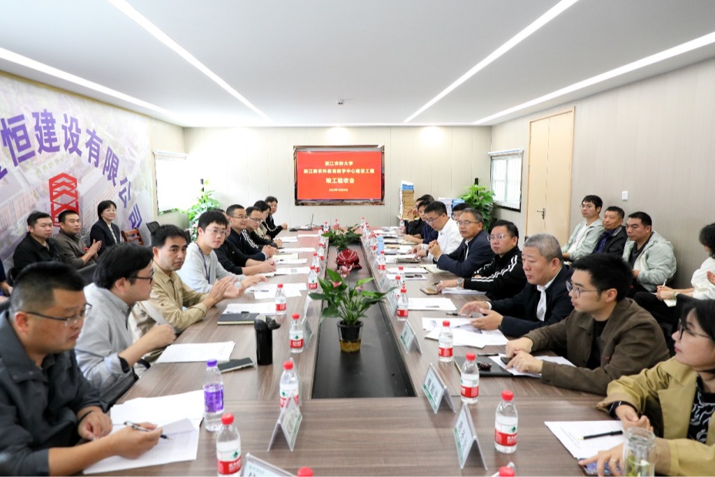 10月25日上午,浙江新農科教育教學中心建設工程項目通過竣工驗收,為學校66周年校慶獻上了一份賀禮。臨安區住建局城市建設管理中心、工程項目參建單位的相關負責人以及新農科建設工程領導小組成員單位負責人參加會議。副校長、基礎設施提質工程工作領導小組副組長胡祖吉出席會議并講話。