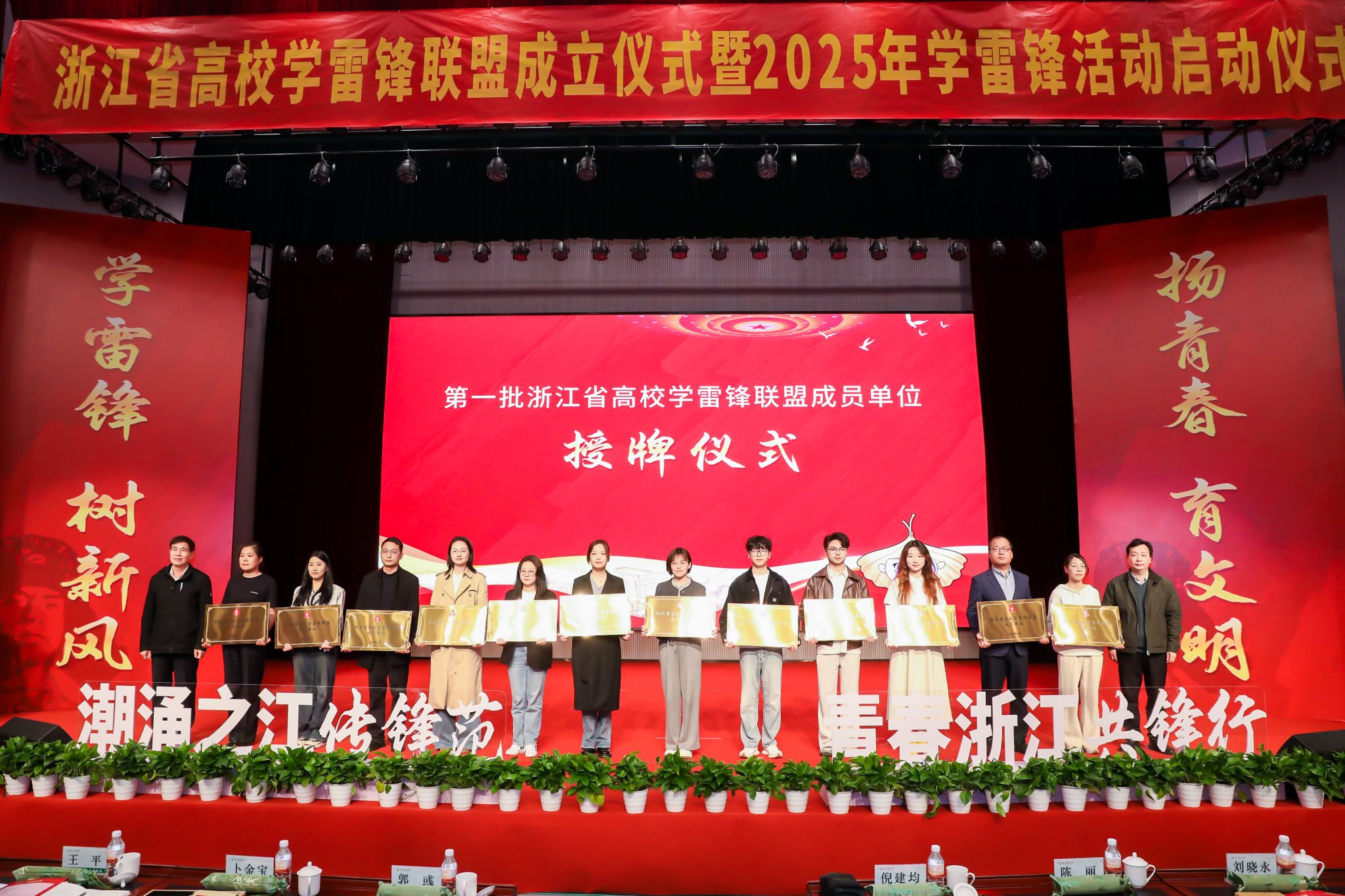 3月2日,浙江省高校學(xué)雷鋒聯(lián)盟成立儀式暨我校2025年學(xué)雷鋒活動啟動儀式在衣錦校區(qū)報告廳舉行。校黨委副書記倪建均,團(tuán)省委志工權(quán)益部部長郭彧,臨安團(tuán)區(qū)委書記陳麗,二級英模、雷鋒雜志社雷鋒精神傳播中心主任卜金寶,浙江好人、金華雷鋒事跡館副館長王平,中國好人、中國青年五四獎?wù)芦@得者孫嘉懌以及來自中國美術(shù)學(xué)院、杭州電子科技大學(xué)等34家高校相關(guān)負(fù)責(zé)人出席會議。