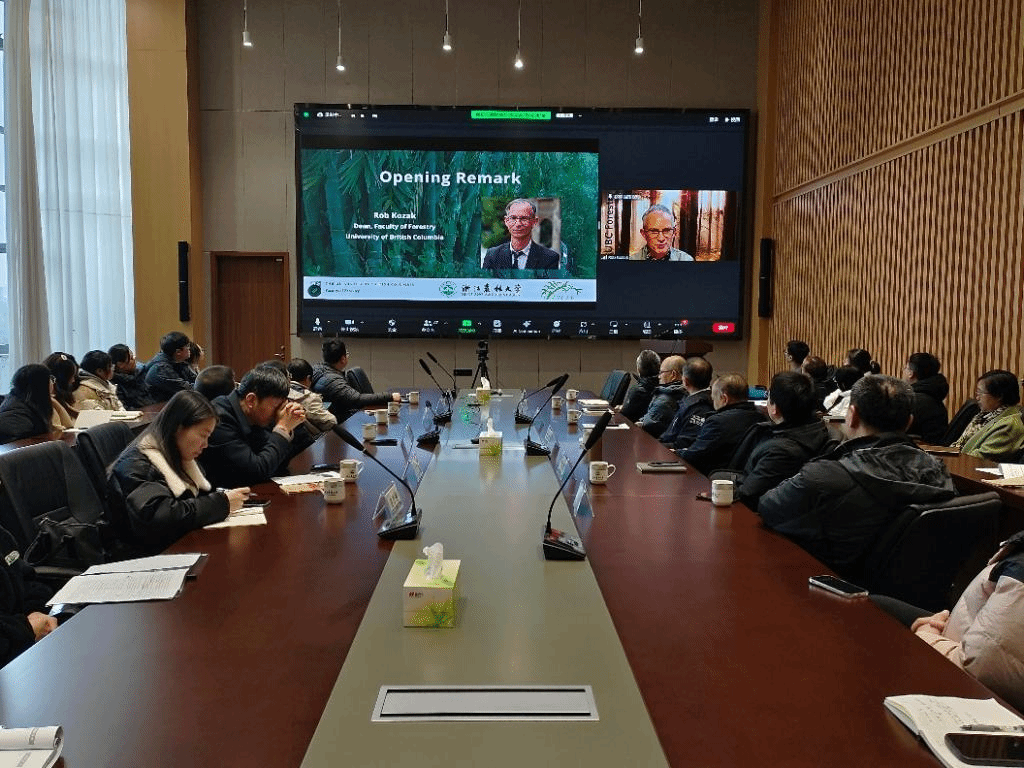 Robert Kozak教授介紹了UBC林學院的概況和林業研究動態。他指出科學研究應該通過解決生物多樣性保護、環境正義、減緩氣候變化、可持續森林管理、城市林業和生物產品開發等問題,努力重新定義和拓寬我們的林業概念。UBC對未來國際合作充滿信心,并期待UBC-ZAFU兩校今后展開進一步的深化合作。