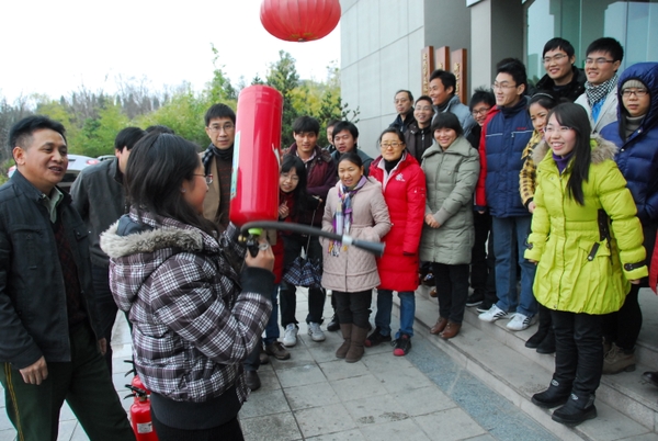 本次消防演習特別邀請國家安全監督管理總局培訓中心馬楚杰教員針對實驗室講解了火災中如何逃生、如何使用消防器材等消防安全知識。講座之后,馬教員、校保衛處鄭禮明、陳向武老師在智能實驗樓前向師生詳細地講解了干粉滅火器的原理及使用方法,師生們也親身體驗了如何使用干粉滅火器撲滅火源。