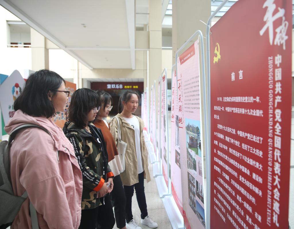 黨的十九大召開在即,連日來,在校黨委的積極部署下,各級黨組織、群團組織認真謀劃,精心準(zhǔn)備,豐富形式,創(chuàng)新載體,通過大型書畫展、宣傳櫥窗展、系列文藝活動等形式,喜迎黨的十九大勝利召開。廣大師生員工把喜迎十九大與日常工作學(xué)習(xí)相結(jié)合,并以實際行動表達師生昂揚向上的精神風(fēng)貌。