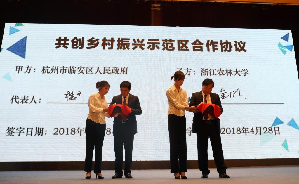雙方還簽訂了人才合作協(xié)議、浙江農(nóng)林大學(xué)科技園入駐青山湖科技城協(xié)議、共創(chuàng)鄉(xiāng)村振興示范區(qū)協(xié)議,進行了合作課題交接、專家互聘、人才專用房移交、置換土地證交付,并為鄉(xiāng)村振興示范區(qū)揭牌。