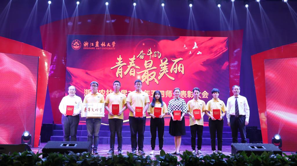 5月4日晚,學(xué)校在東湖校區(qū)影劇院舉行“五四”師生表彰大會(huì)暨青年合唱比賽。校黨委書記周國(guó)模,黨委副書記史永安,副校長(zhǎng)沈月琴,校黨委委員、宣傳部部長(zhǎng)胡祖吉,學(xué)校相關(guān)職能部門負(fù)責(zé)人,各學(xué)院黨政負(fù)責(zé)人,校教學(xué)與學(xué)位指導(dǎo)專門委員會(huì)成員,各二級(jí)學(xué)院分團(tuán)委書記、學(xué)生會(huì)秘書長(zhǎng)、全體輔導(dǎo)員,獲獎(jiǎng)先進(jìn)集體和個(gè)人,各學(xué)院團(tuán)員青年代表等千余人參加此次大會(huì)。