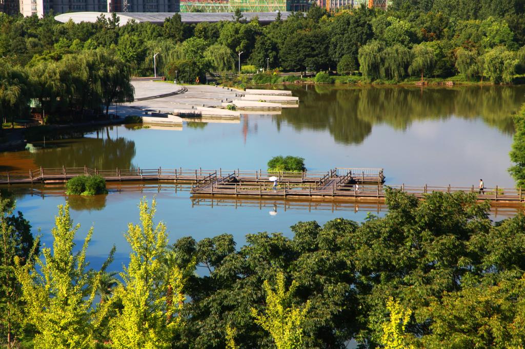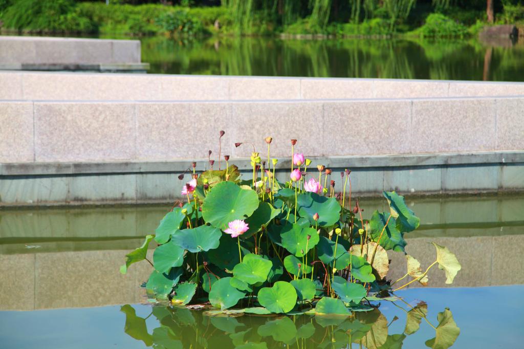 陽光從層層疊疊的枝葉間透射下來,地上便印上大大小小粼粼的光斑。茂密的樹叢,蕩漾的碧波,亭亭玉立的蓮花,還有潺潺的水聲,自然風光與校園建筑交相輝映,每一個地方都留下了農林人探尋的足跡。