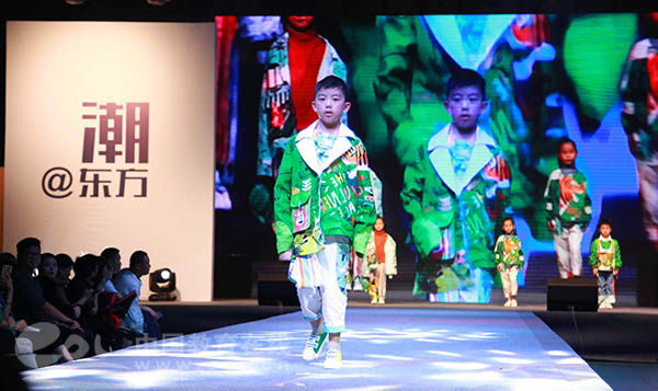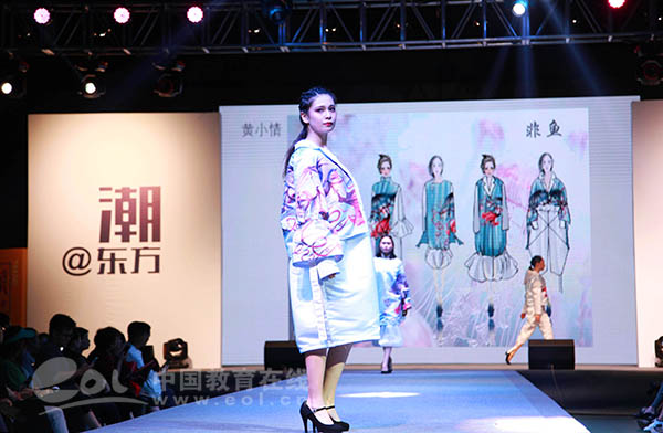 這次畢業(yè)秀主題為“潮@東方”,來源于“中國潮”力量在國際服裝周的醒目亮相。本土品牌的轉(zhuǎn)型,即是國人對中國元素的情懷,也是服裝設(shè)計理念的蛻變。畢業(yè)生們在設(shè)計中運用漢服等傳統(tǒng)形制,百家衣拼布等傳統(tǒng)工藝、山海經(jīng)怪獸圖樣等傳統(tǒng)圖案、布老虎等傳統(tǒng)造型和中藥染等傳統(tǒng)染色,與時尚流行趨勢相結(jié)合,挖掘傳統(tǒng)服飾文化魅力,倡導(dǎo)民族文化自信,打造了一場精彩的“國潮秀”。