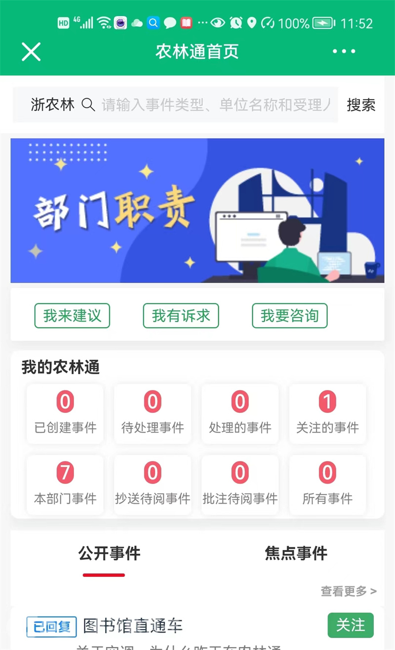 能夠在收到學生訴求后,第一時間處理并回復,還要歸功于浙江農林大學為進一步推進管理精細化而研發的“農林通”微應用。該微應用是浙江農林大學“智慧浙農林”APP的組成部分之一,是學校引導師生主動參與學校建設與發展,傾聽師生心聲、了解師生想法、集中師生智慧的重要途徑,也是該校推進“我為師生辦實事”,增強師生獲得感、幸福感、安全感的重要舉措之一。