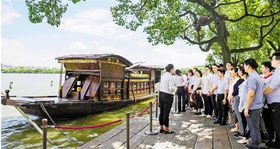 嘉興南湖,從全國(guó)各地前來(lái)參觀紅船的黨員群眾絡(luò)繹不絕。浙江新聞客戶端記者 呂之遙 拍友 周晨磊 攝