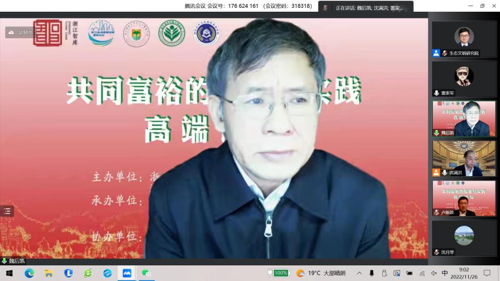 在平行論壇環節,浙江省文化研究工程重大項目“共同富裕的探索與實踐——浙江案例研究”22個子課題負責人,就浙江省各縣市在“八八戰略”指引下開展的共同富裕的案例研究的成果展開了學術研討。該項目由沈滿洪教授主持,由浙江農林大學牽頭,整合了浙江大學、寧波大學等省內11所高校浙江省生態文明智庫聯盟成員單位相關領域研究力量,將緊密圍繞歷屆浙江省委省政府在“八八戰略”指引下共同富裕的改革探索,以浙江省17個縣域、特色小鎮、千萬工程、可持續發展示范區為樣本,闡明浙江省域、縣域、鎮、村等不同層面推進共同富裕提升發展的均衡性、全面性、協調性的實踐經驗,形成“共同富裕探索與實踐——浙江經驗總論”等22部專著。