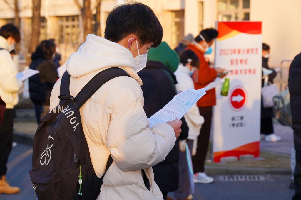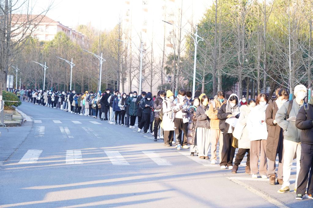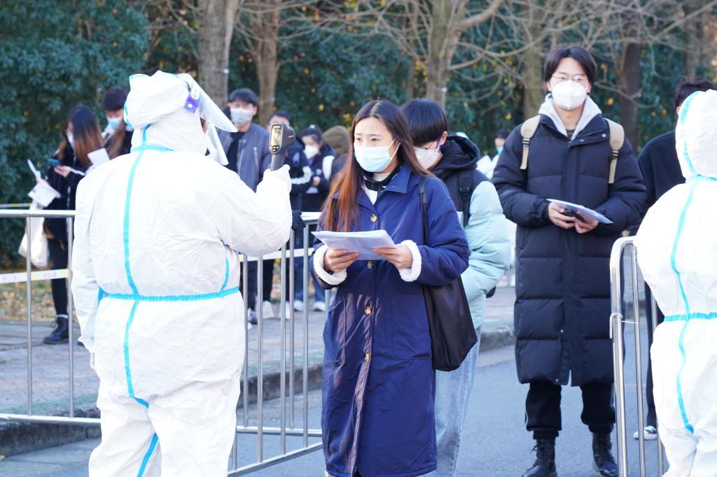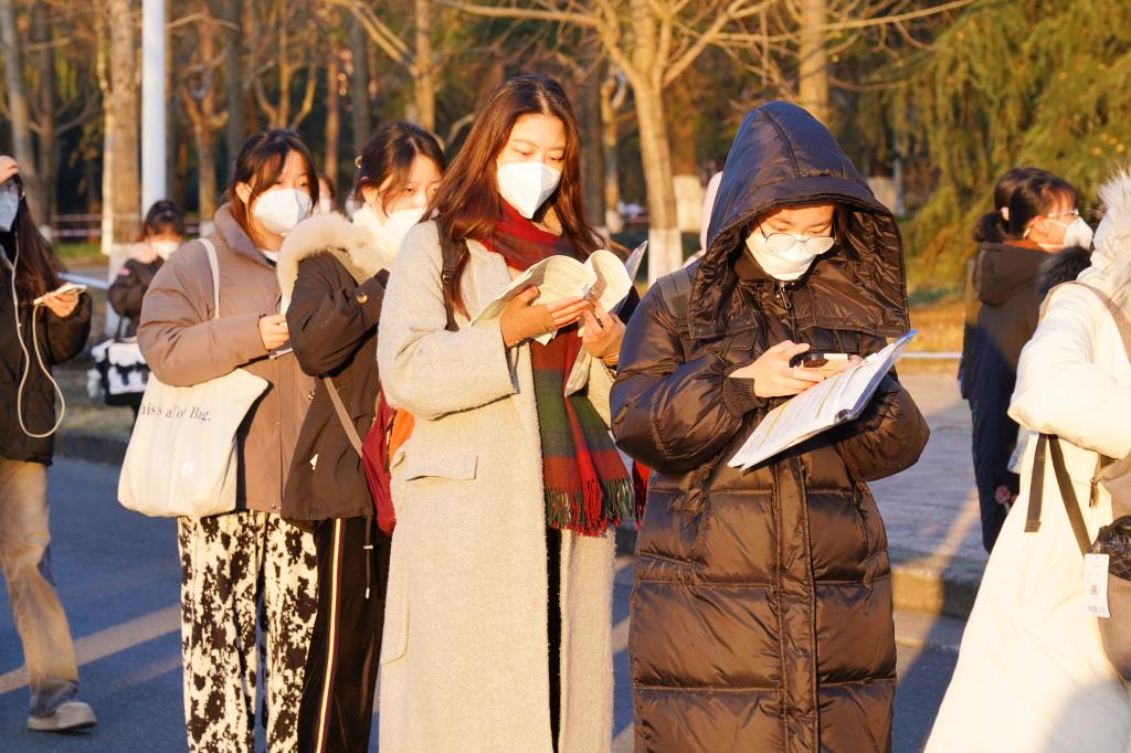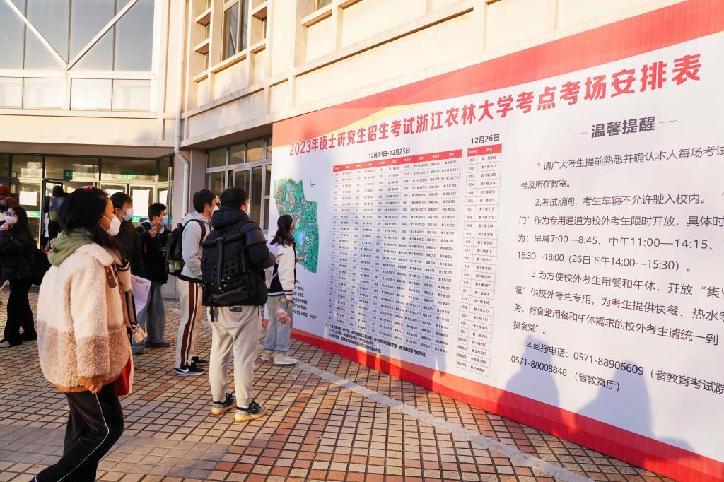 12月24日,2023年全國碩士研究生招生考試正式開考。浙江農林大學2023年碩士研究生招生考試考點,考生們通過身份核驗、亮碼、測溫等環節有序進入校園,在考場外規定區域排隊等候進入考場,并在排隊期間進行最后的緊張復習。今年,浙江農林大學的考生超過2500人。為了做好此次考試的疫情防控、考務組織以及考生服務工作,學校專門成立了工作專班,制定了詳細工作方案以及各環節各點位的細化分解方案,確??荚嚬ぷ饔行蜻M行。