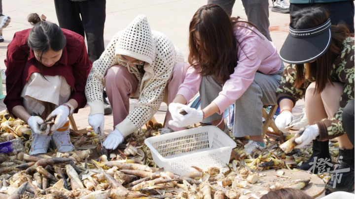 剝筍比賽的裁判說(shuō),活動(dòng)特別火爆,教師職工和同學(xué)們都早早地報(bào)好了名,今天還有很多圍觀的同學(xué)看不過(guò)癮,想要現(xiàn)場(chǎng)報(bào)名體驗(yàn)剝筍,“我們準(zhǔn)備了1000斤筍,好像都不太夠大家剝”。