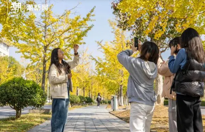 11月14日,浙江農林大學的“銀杏大道”上,前來賞秋的同學和游客絡繹不絕。浙江農林大學是國家生態文明教育基地,校園里擁有3300多種植物,植物種類位居全國高校第一。該校東湖校區的“銀杏大道”,種植了近千棵銀杏樹,每到秋天銀杏葉一片金黃,師生們不出校園就可以欣賞到美麗的秋景。今年校園無須預約,校外游客也可以進入賞景打卡拍照。