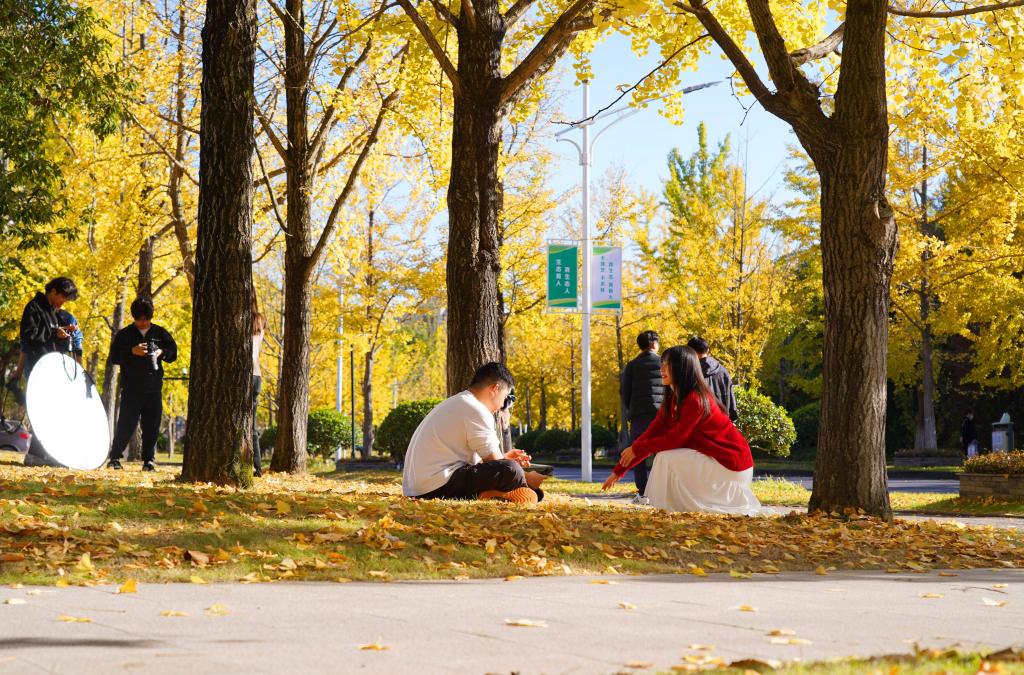初冬時分,浙江農林大學校園里的銀杏大道,滿地鋪金、美不勝收,成為了欣賞秋色的網紅打卡點,吸引了很多市民來此拍照打卡,師生們更是不出校園就可以欣賞到絕“色”美景。
