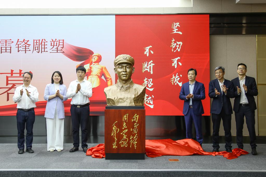 報告會后,楊擎宇向學校捐贈了雷鋒雕像,浙江六和律師事務所高級顧問謝春林捐贈了法學圖書。倪建均、魏玲玲、鄭炳松、朱紅東、張永亮與捐贈人楊擎宇共同為雷鋒雕塑揭幕。