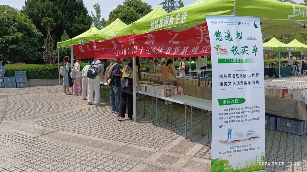 為深入推進全民閱讀,營造書香農林文化氛圍,提升圖書館的服務質量,本次活動圖書館與省新華書店、杭州海鯊書店、湖北三新文化傳媒公司等共推出中外文暢銷圖書1000余種,內容涵蓋生態、建筑、政治、經濟、哲學等自然與人文社科的多個學科領域。活動以讀者選書推薦、圖書館采購外借的形式展開,現場吸引了大批參加活動的師生讀者,共薦購圖書500余種。活動現場還邀約后勤文教、學生社團推出浙農林元素的文創產品、傳統雕版板印和簪花制作工藝體驗,讓師生浸潤書香的同時,領略校園文化的獨特魅力,暢享傳統工藝的神韻。