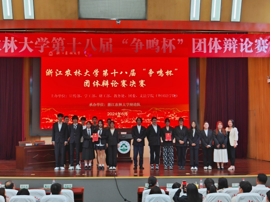 6月2日下午,浙江農林大學第十八屆“爭鳴杯”團體辯論賽決賽在東湖校區圖書館第一報告廳舉行。本次活動由宣傳部、學工部、研工部、教務處、團委、文法學院聯合主辦,浙江農林大學辯論隊承辦。校新聞中心主任,宣傳部、教工部副部長陳勝偉,校團委書記魏玲玲,文法學院(外國語學院)黨委書記兼副院長朱紅東,以及學工部、研工部、教務處等部門相關負責人出席活動。