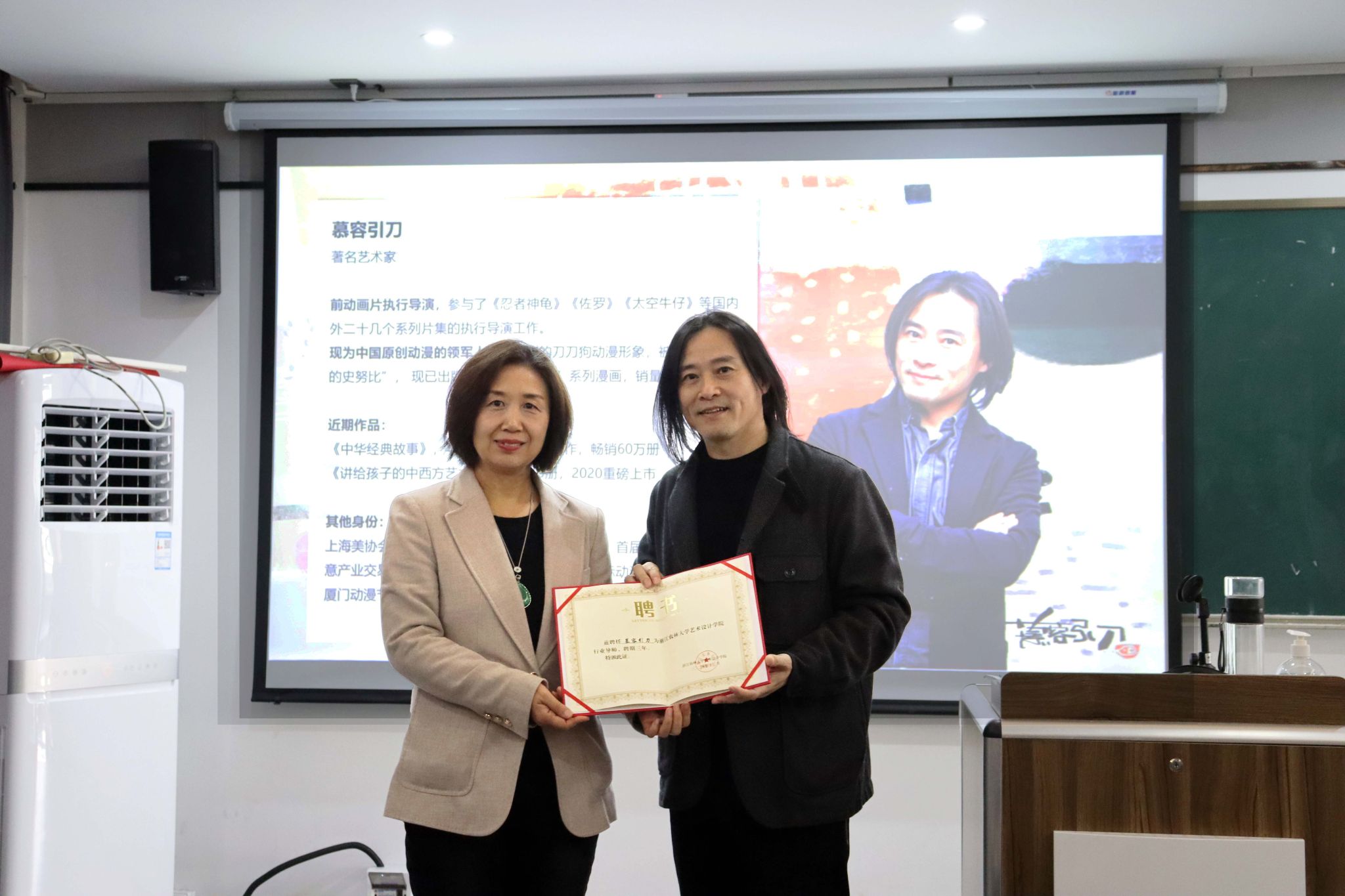 講座現(xiàn)場(chǎng)氣氛熱烈,師生們紛紛就藝術(shù)的創(chuàng)作與生活的關(guān)系等相關(guān)話題與慕容引刀進(jìn)行了深入交流,在場(chǎng)師生們受益匪淺。現(xiàn)場(chǎng)還聘請(qǐng)慕容引刀為浙江農(nóng)林大學(xué)藝術(shù)設(shè)計(jì)學(xué)院行業(yè)導(dǎo)師。