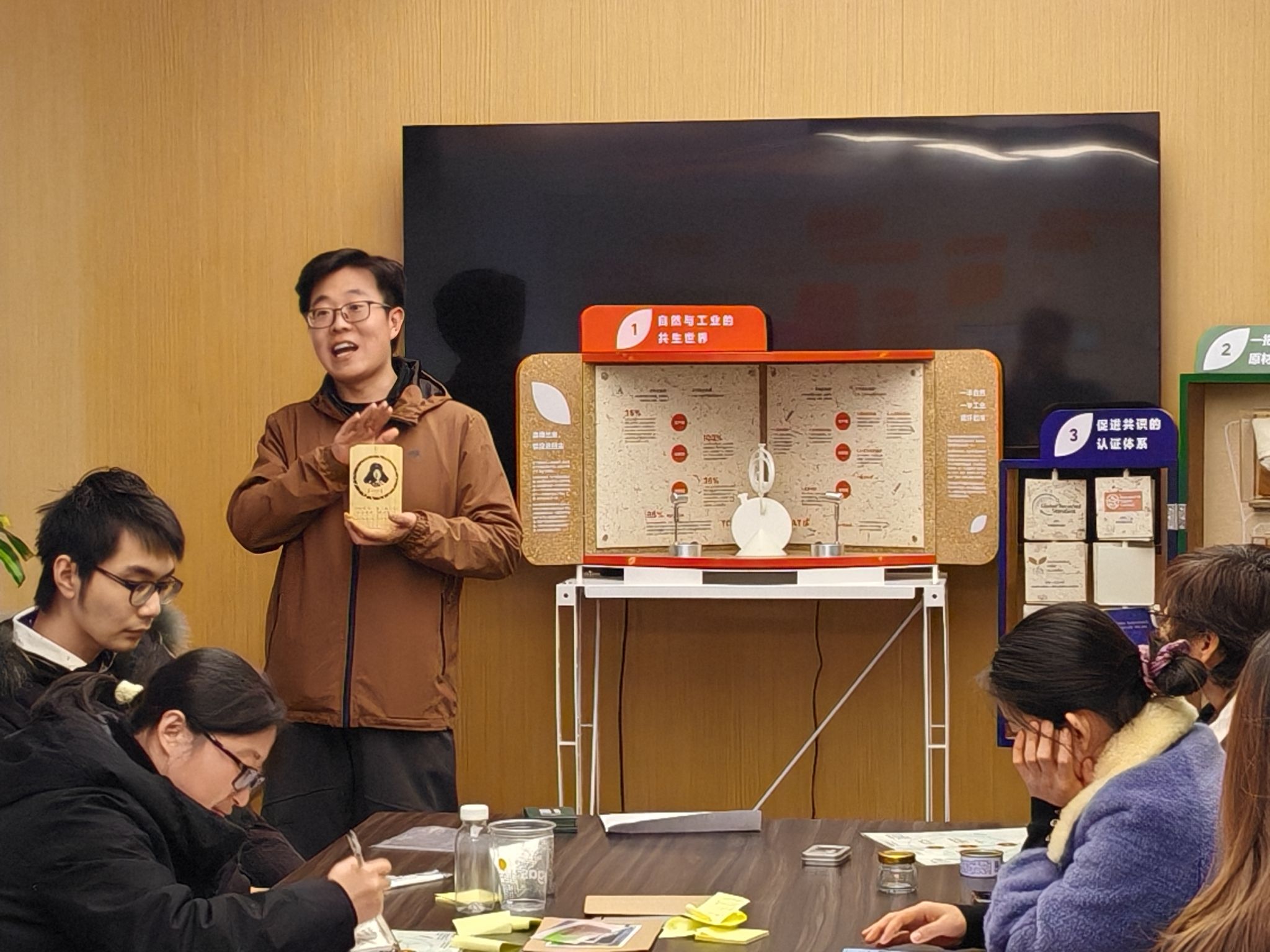 本次活動(dòng)中,雷鋒班黨支部代表作為主講嘉賓,以共創(chuàng)和體驗(yàn)的方式,現(xiàn)場(chǎng)解讀了日用品的工藝與材料,串聯(lián)產(chǎn)品從生產(chǎn)到廢棄的全鏈路,并向大家展示了學(xué)校學(xué)運(yùn)用自主研發(fā)的刨切微薄竹技術(shù)以毛竹為原材料制作的“雷鋒班”文創(chuàng)明信片,介紹了浙農(nóng)林大生態(tài)育人之路與雷鋒班的生態(tài)環(huán)境保護(hù)志愿服務(wù)。