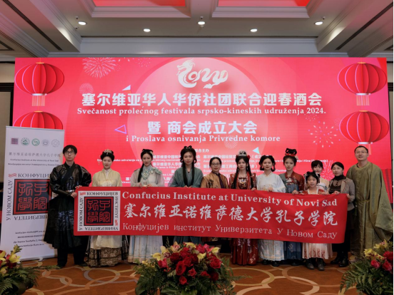 當(dāng)?shù)貢r(shí)間1月16日,諾維薩德大學(xué)孔子學(xué)院應(yīng)邀參加在貝爾格萊德舉行的塞爾維亞華人華僑社團(tuán)聯(lián)合迎春酒會(huì)暨商會(huì)成立大會(huì)。