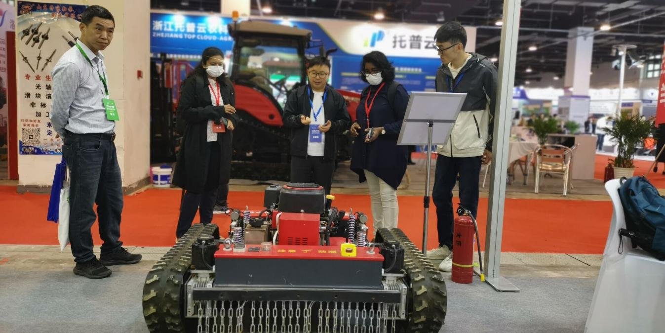 展會期間浙江省科協黨組成員、副主席武傳宇教授、浙江省農業機械學會理事長楊震宇總經理、浙江理工大學俞高紅教授、石河子大學坎雜教授、青島農業大學尚書旗教授、山東理工大學耿端陽教授及Dares kittiyopas(泰國農業工程學會主席)等專家學者饒有興致地來到我校展臺與參展師生深入交流,充分肯定了我校經濟林全程機械化、堅果/漿果機械化采收、農機電動化無人化等農林機裝備研發的技術水平及成效,參展農機也得到了農機合作社、新型農業經營主體、農機推廣部門及消費者的高度關注與好評。