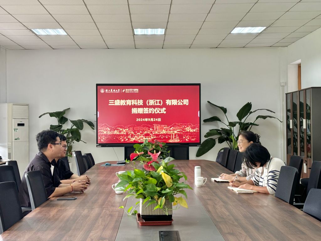 儀式上,雙方共同簽署捐贈(zèng)協(xié)議,并向三盛教育科技(浙江)有限公司頒發(fā)了捐贈(zèng)證書。